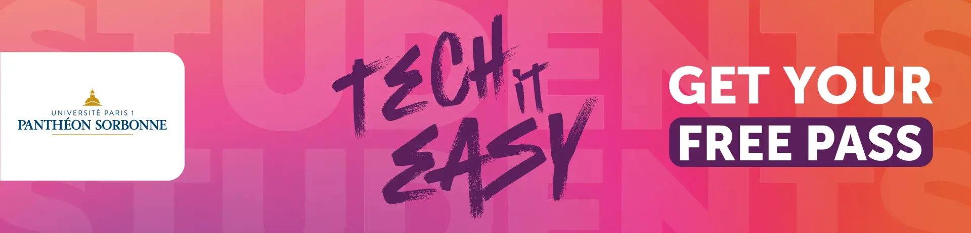 L'université Paris 1 Panthéon-Sorbonne, partenaire académique du salon Viva Technology, a le plaisir de faire bénéficier gratuitement à ses étudiants d'un pass student pour la 7e édition du plus grand rendez-vous mondial des startups et des nouvelles technologies.